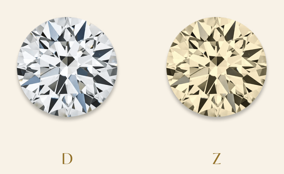 In the mid-1950s The Gemological Institute of America devised a colour grade scale between D - Z, to regulate and define the colour spectrum of diamonds. With D classed as completely colourless and Z being slightly yellow or brown in appearance. It is good to note that the colour of the diamond has a huge impact on its value.